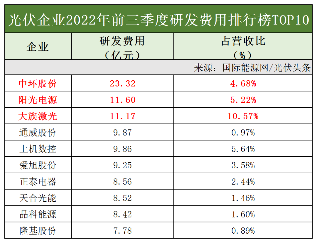 前三季度研發(fā)費(fèi)用方面,92家企業(yè),總計(jì)研發(fā)費(fèi)用244.71億元,中環(huán)股份、陽光電源、大族激光排名前三,研發(fā)投入超過1億元的企業(yè)有50家,占比為54.35%??梢娮鳛楦呒夹g(shù)行業(yè),各家對(duì)于技術(shù)研發(fā)的重視。