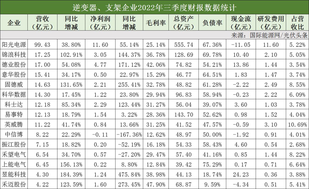 15家逆變器、支架相關(guān)企業(yè),營(yíng)收全部實(shí)現(xiàn)正向增長(zhǎng),只有1家企業(yè)虧損,3家企業(yè)凈利潤(rùn)增幅下滑。