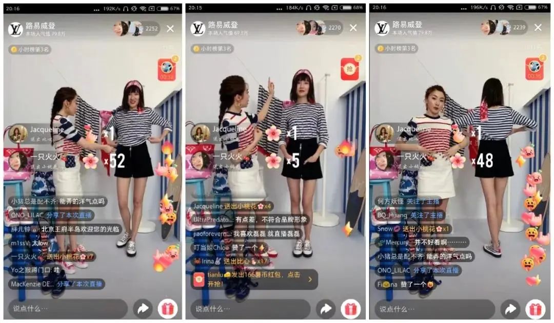 2020年3月,LV在小紅書獻(xiàn)上了直播首秀,邀請了鐘楚曦和時(shí)尚博主程曉玥進(jìn)行直播講解,這也是奢侈品首次以官方賬號進(jìn)行直播,開播半小時(shí)LV沖上直播榜首,直播間人氣值超過600萬,整場直播互動(dòng)率達(dá)到33%。