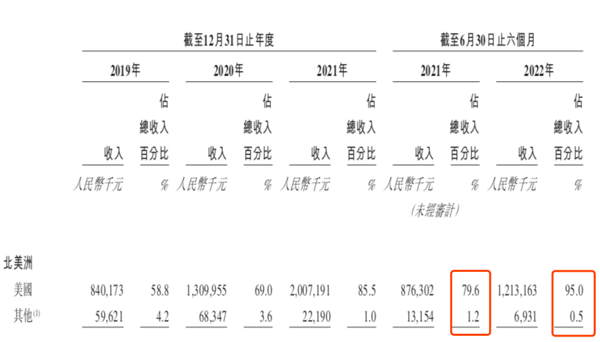 雖然子不語(yǔ)面向全球超過(guò)80%的國(guó)家和地區(qū)銷售,但近兩年美國(guó)市場(chǎng)集中度不斷提高。2022年上半年美國(guó)市場(chǎng)在營(yíng)收中的占比高達(dá)95%,這也是亞馬遜的市場(chǎng)重心。