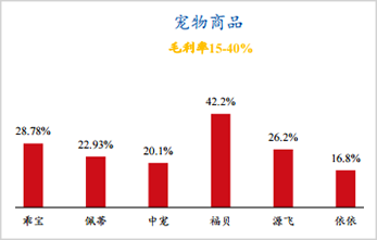 單純從看賬面上看盈利能力,2021年,中寵、乖寶與佩蒂營收分別為28.8、25.8與12.7億元,福貝寵物2020年營收同比大增64%達到6.6億元(2021年未披露)。特別需要指出的是,福貝股份的體量雖然和其他三家差不少,但凈利潤并不落后,甚至一度處于領(lǐng)先位置,原因出在毛利率上。
