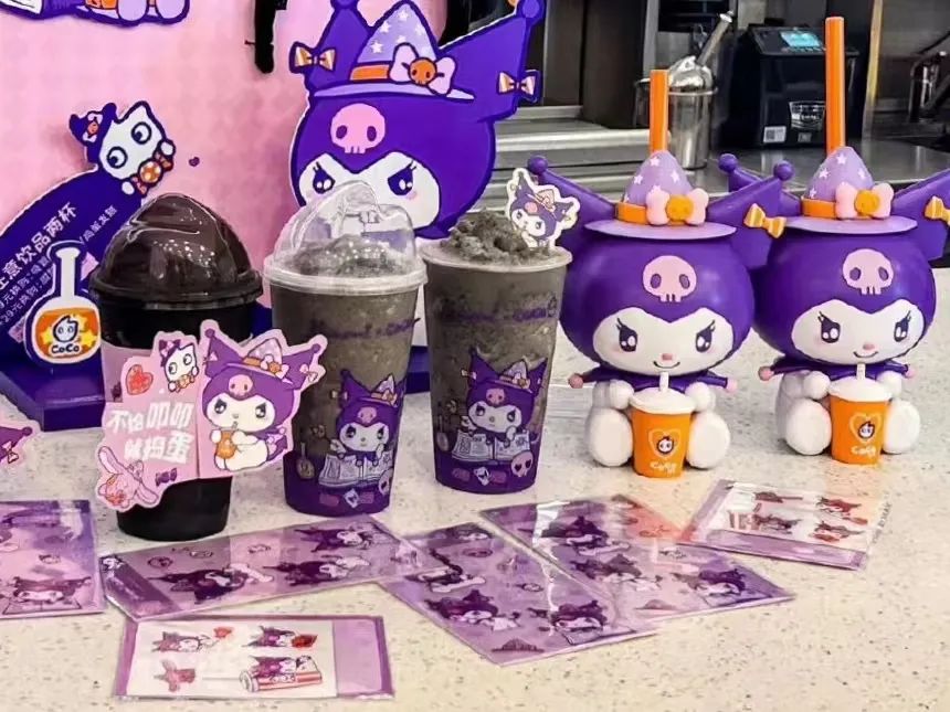 CoCo都可的黑芝麻系列和Kuromi聯(lián)名,官方頭像也換成了紫色的聯(lián)名照,并在北京、杭州、廣州等地開出聯(lián)名主題店;還推出聯(lián)名的萬(wàn)圣節(jié)產(chǎn)品、庫(kù)洛米杯子、吸管等周邊產(chǎn)品,很受年輕人喜愛。