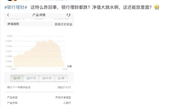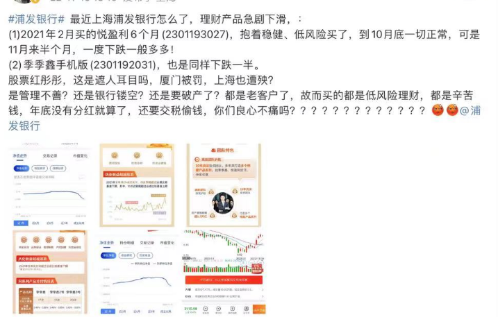 除了招商銀行,亦有投資者抱怨自己買的浦發(fā)銀行的悅盈利之6個月定開型F款,11月份以來大幅下跌。