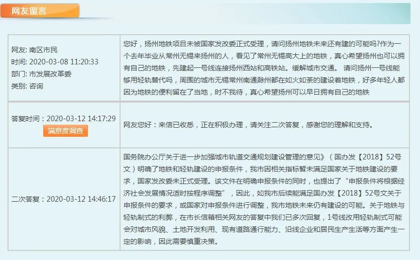 △ 揚州市發(fā)改委回復 圖源:官網(wǎng)截屏