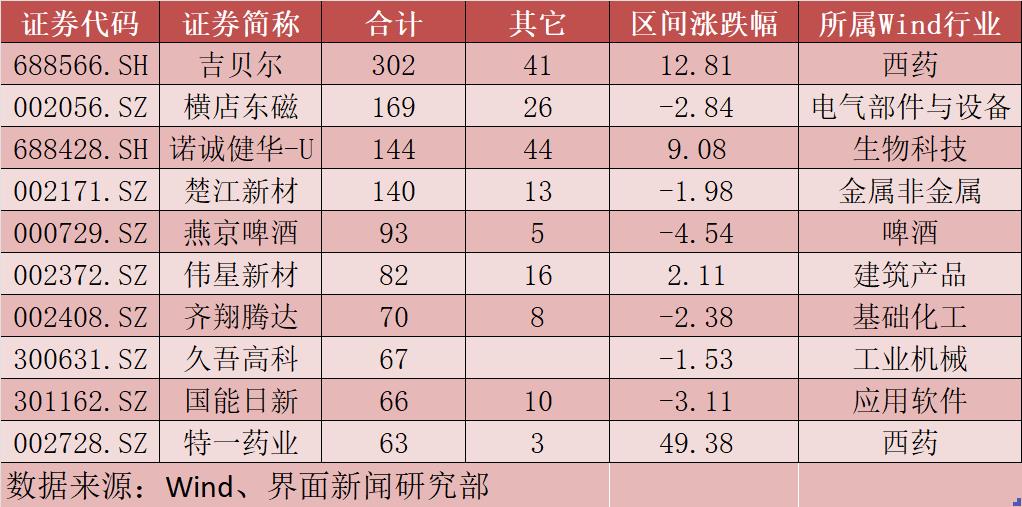 橫店東磁本周調(diào)研活動(dòng)參與機(jī)構(gòu)高達(dá)169家,熱度僅次于吉貝爾。此外,諾誠健華-U、楚江新材等個(gè)股的機(jī)構(gòu)調(diào)研數(shù)量也超過100家。
