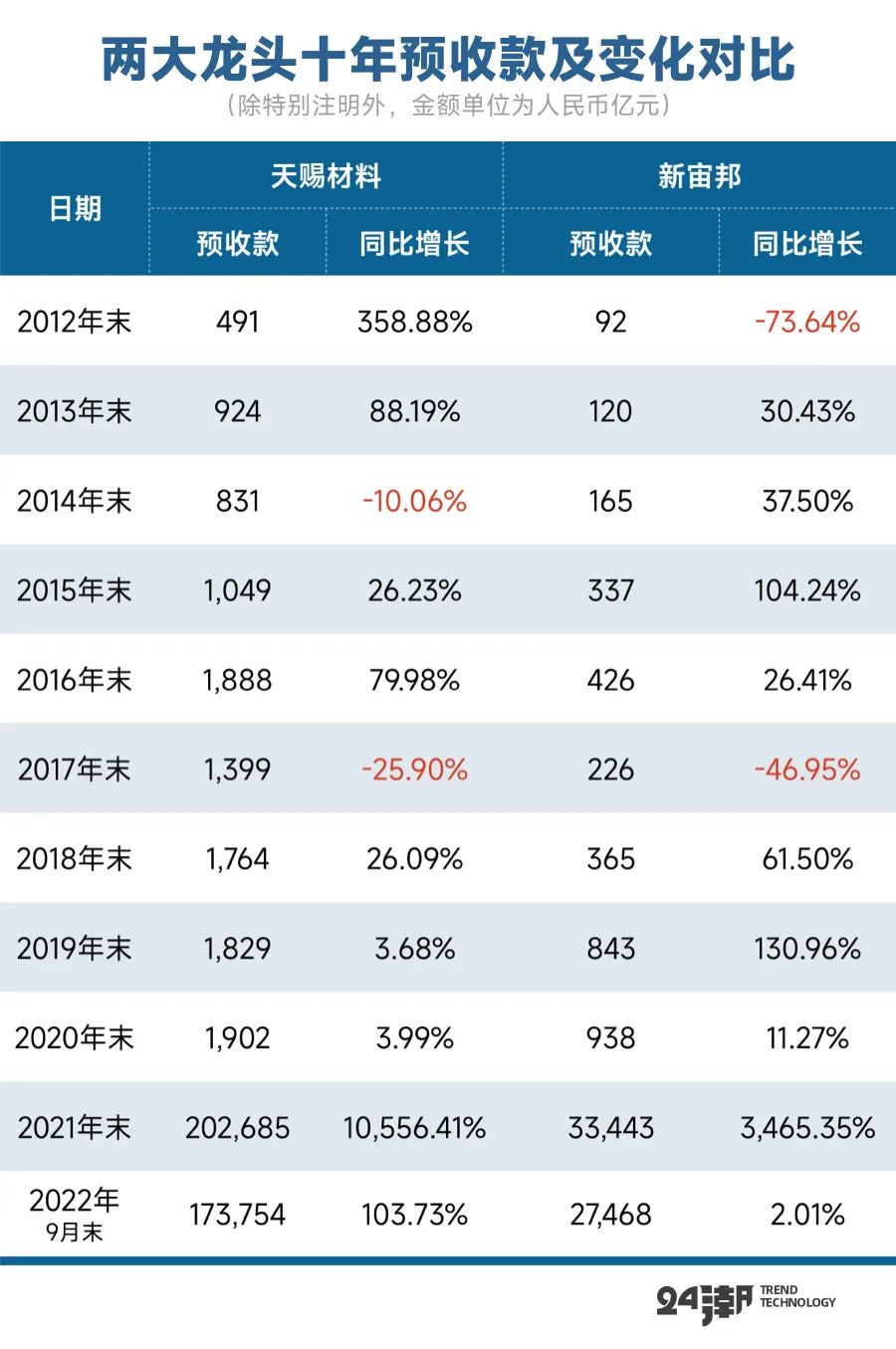 從這一數(shù)據(jù)變化看,天賜材料訂單可能更為充足。據(jù)24潮統(tǒng)計,截止2022年9月末新宙邦 “合同負債” 規(guī)模為2.75億元,僅同比增長2.01%,而天賜材料 “合同負債” 規(guī)模達17.38億元,同比增長了103.73%。