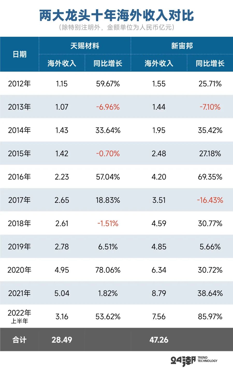 如下表所示,過去十年間,新宙邦海外收入規(guī)模一直高于天賜材料,尤其是2021年以來,其無論是海外收入規(guī)模,還是海外收入增速均遠超同期的天賜材料,最新數(shù)據(jù)顯示,2022年上半年新宙邦海外收入為7.56億元,是天賜材料的2.39倍。