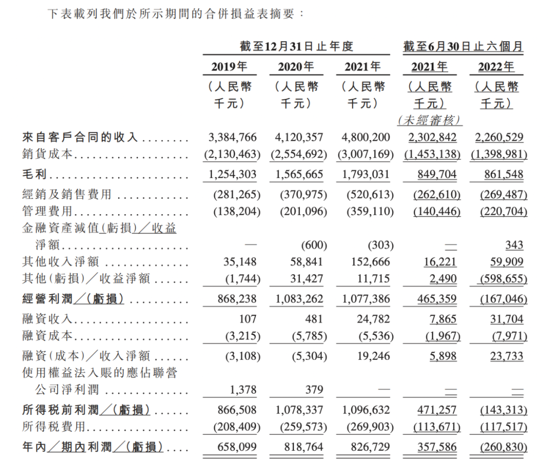 利潤(rùn)方面,衛(wèi)龍?jiān)?019年、2020年及2021年的利潤(rùn)分別為6.58億元、8.19億元、8.26億元,但截至2022年6月30日止的六個(gè)月錄得虧損2.61億元,主要與此前投資有關(guān)的一次性的以股份為基礎(chǔ)的付款有關(guān),部分被毛利于同期由8.50億元增至8.62億元所抵銷(xiāo)。