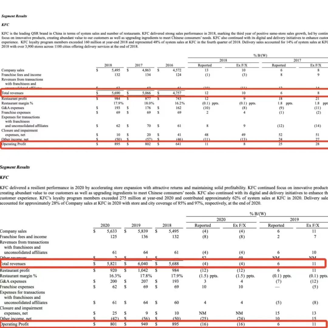 肯德基在中國的母公司百勝中國財報顯示,在疫情之前,肯德基的營收和經(jīng)營利潤已經(jīng)出現(xiàn)增長放緩。2017年-2019年,肯德基的營收增速分別為6%、12%、6%,與之對應(yīng)的經(jīng)營利潤同比增速由25%下滑至6%。
