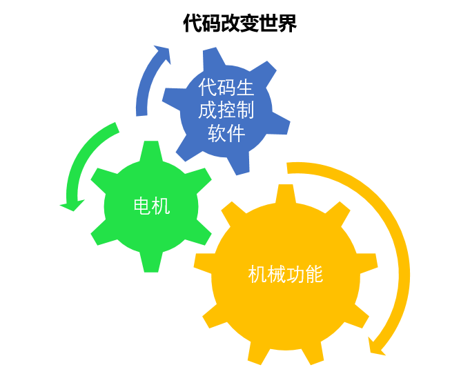 具體的操作思路是用代碼生成控制軟件,通過(guò)操作電機(jī)驅(qū)動(dòng)機(jī)械來(lái)實(shí)現(xiàn)各種機(jī)械功能。這樣就將復(fù)雜的機(jī)械功能轉(zhuǎn)換變成幾行代碼的寫作,難度下降了N個(gè)數(shù)量級(jí)。代碼與機(jī)械功能之間通過(guò)電機(jī)連接。因?yàn)殡姍C(jī)可以用非常小的誤差實(shí)現(xiàn)機(jī)械功能,以我們常用的17位伺服電機(jī)為例,用脈沖來(lái)控制電機(jī)運(yùn)動(dòng),每131072個(gè)脈沖轉(zhuǎn)一圈,也就是最小精度是360/131072=0.0027度,定位誤差可以達(dá)到0.001毫米。