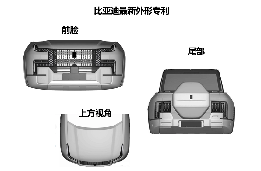 根據(jù)比亞迪最新的外觀設(shè)計(jì)專利,仰望的外形跟Rivian一樣,走得都是簡(jiǎn)約大氣的路線,非常符合目前電動(dòng)車的潮流。