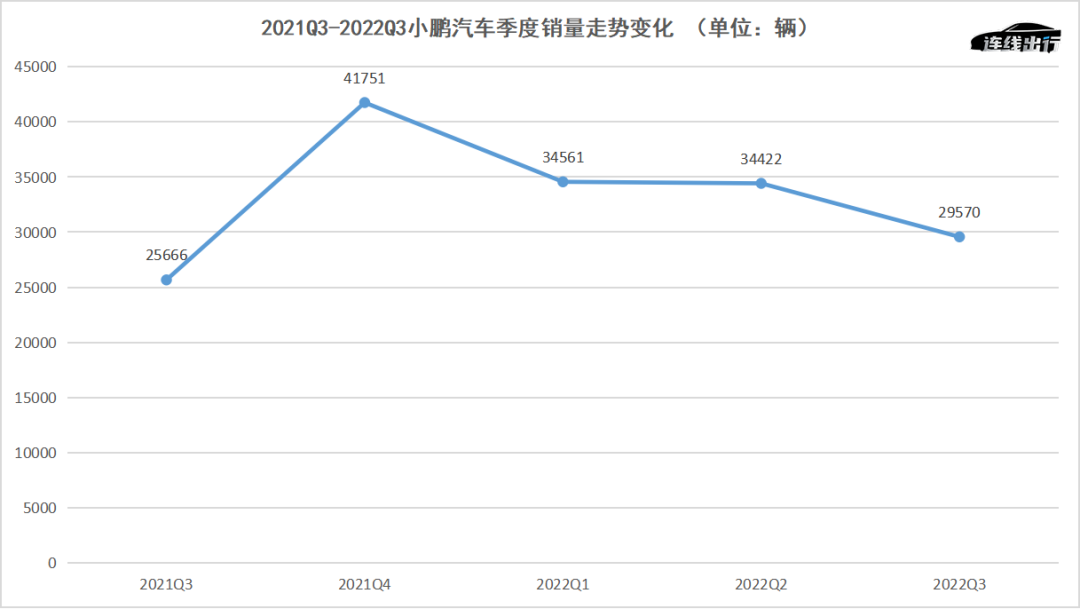 2021Q3-2022Q3小鵬汽車(chē)季度銷(xiāo)量走勢(shì)變化,數(shù)據(jù)來(lái)源于財(cái)報(bào),連線出行制圖