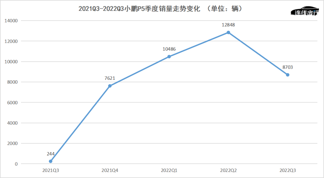 2021Q3-2022Q3小鵬P5季度銷(xiāo)量走勢(shì)變化,數(shù)據(jù)來(lái)源于財(cái)報(bào),連線出行制圖