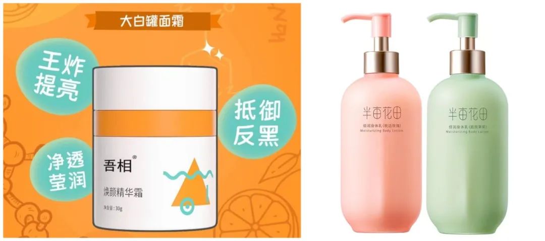 △圖:吾相大白罐(左)、半畝花田身體乳(右),圖源于天貓旗艦店