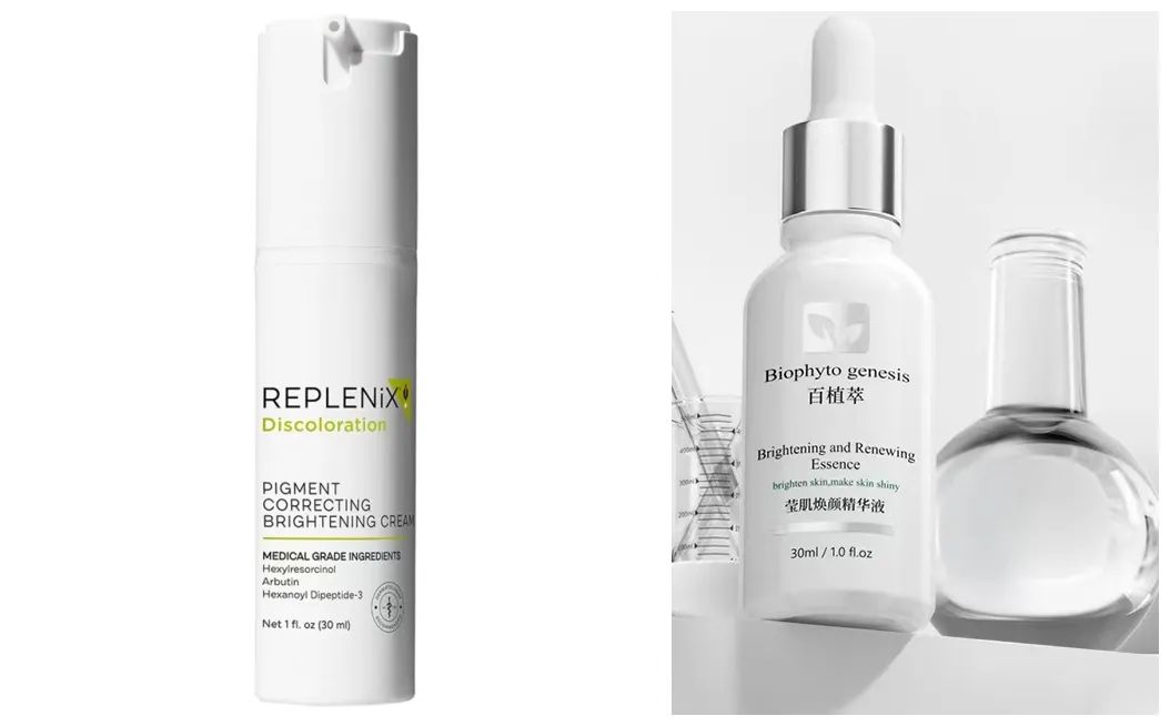 △圖:Replenix珞蓓詩美白精華乳(左)、百植萃瑩肌煥顏精華液(右),圖源天貓旗艦店