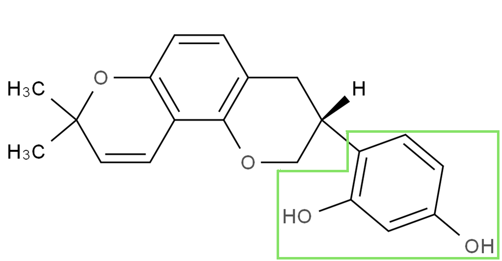 以上提到的成分均以含間苯二酚的名稱出現(xiàn)在成分表中,可被歸類為間苯二酚衍生物,且都是通過抑制酪氨酸酶活性起作用。但除此之外,一些以植物命名的天然成分,其分子結(jié)構(gòu)式中亦有間苯二酚結(jié)構(gòu),且實(shí)驗(yàn)顯示也能抑制酪氨酸酶活性。