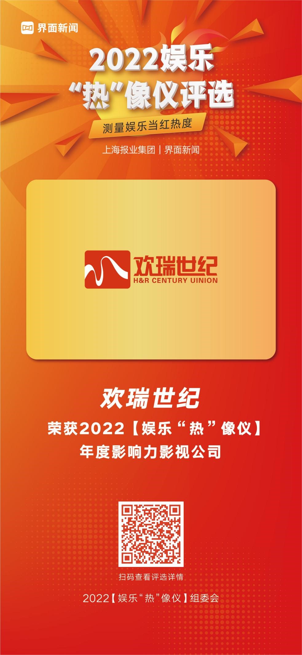 其中,歡瑞世紀(jì)憑借在文娛行業(yè)的影響力,榮膺年度影響力影視公司。