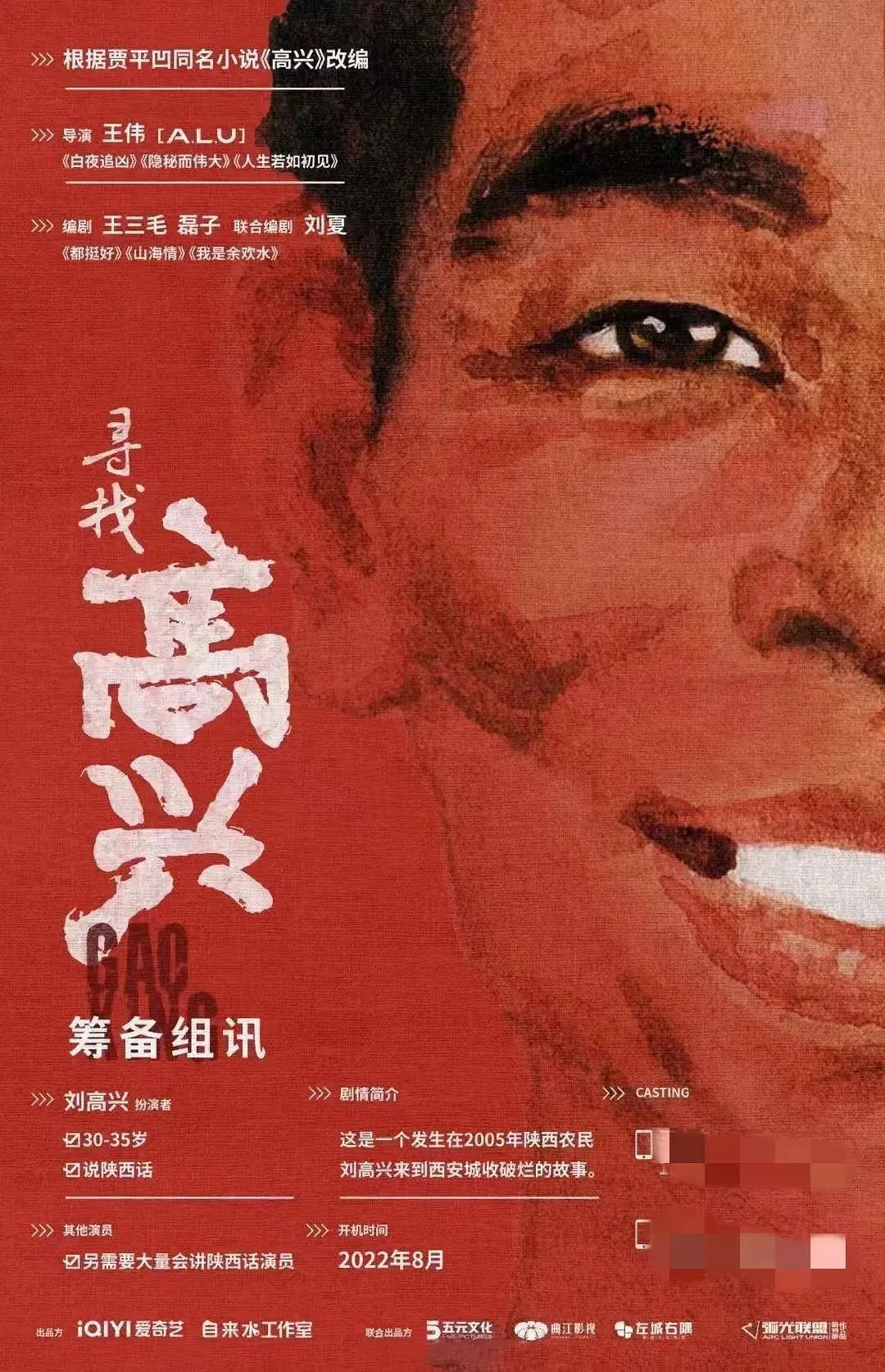值得注意的是,五元文化還和愛奇藝、曲江影視、左城右隅等合作改編了賈平凹同名小說《高興》,而編劇團隊主要由操刀過《山海情》《我是余歡水》的王三毛、磊子組成。