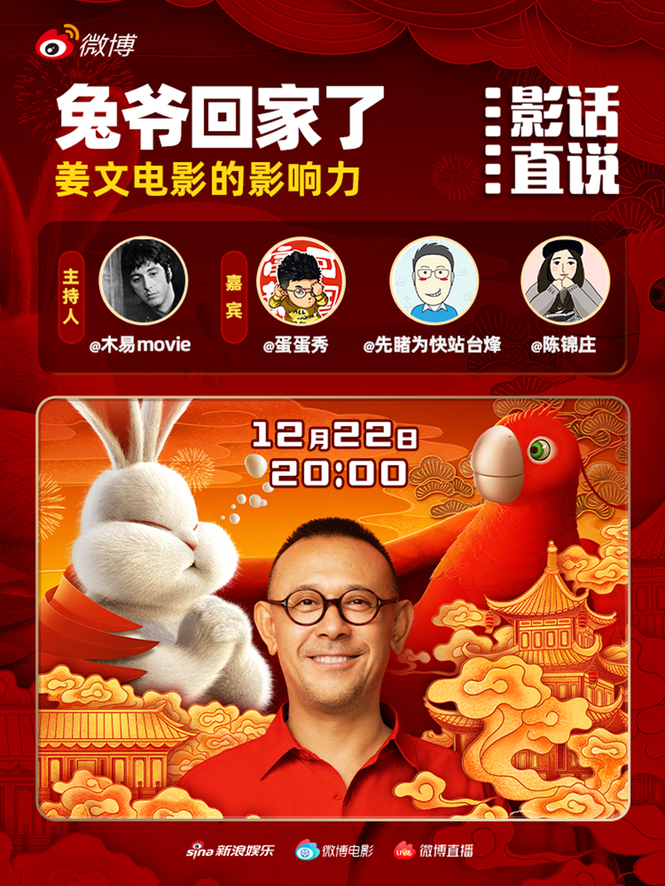 微博電影官方賬號首發(fā)《兔爺回家》短片,并以微博電影官方賬號為主要矩陣助力電影傳播;同時運(yùn)營氛圍,設(shè)置【電影評鑒官】,邀請大V評鑒電影;設(shè)置多個電影相關(guān)的互動活動,積累起用戶好感;聯(lián)合多個微博大V,開啟“兔爺回家了”等連續(xù)的微博直播活動,講述姜文電影的影響力......用電影的方式宣傳《兔爺回家》微電影,巧妙提升影片的內(nèi)容價值,引導(dǎo)觀眾建立起正向評價。