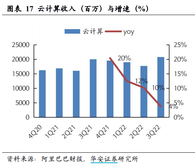 華安證券研報認(rèn)為造成較低增速的原因包括:疫情造成部分項目交付延期,無法順利完成收入確認(rèn);客戶對數(shù)字化、云服務(wù)的需求強烈,但受宏觀環(huán)境影響投入意愿不足或存在時滯,預(yù)計公司四季度云計算收入將迎拐點。