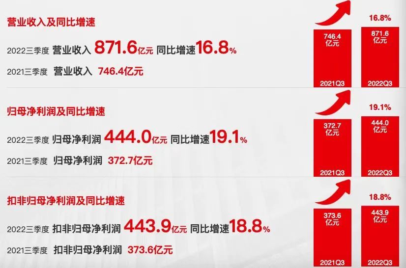 公司2022年度預計實現(xiàn)營收1272億元左右,同比增長16.20%左右;預計實現(xiàn)歸母凈利潤626億元左右,同比增長19.33%左右,超額完成了年度目標任務。