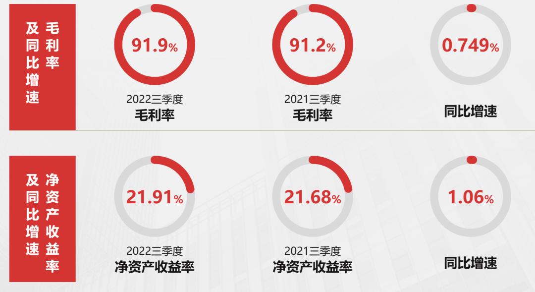 三季度,茅臺盈利能力穩(wěn)中有升,三季度毛利率為91.9%,同比上升0.7個百分點。