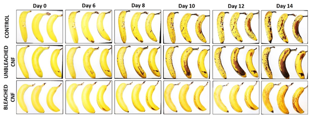 有和沒有 EMPA 涂層的香蕉在保質(zhì)期測試中的表現(xiàn),圖片來源:food ingredients first
