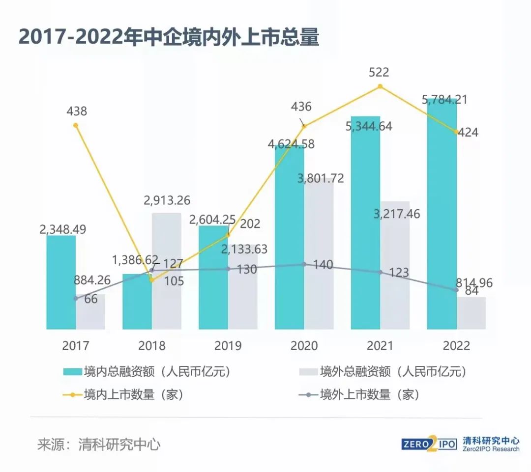 回顧過(guò)去一兩年,計(jì)劃赴美上市的中國(guó)公司幾乎都停止了步伐,真正赴美IPO的中概股寥寥無(wú)幾。根據(jù)清科創(chuàng)業(yè)(01945.HK)旗下清科研究中心統(tǒng)計(jì),2022全年僅有10家中企在美上市,融資規(guī)模約合人民幣18.92億元,同比分別下降72.2%、97.6%。