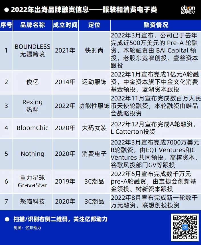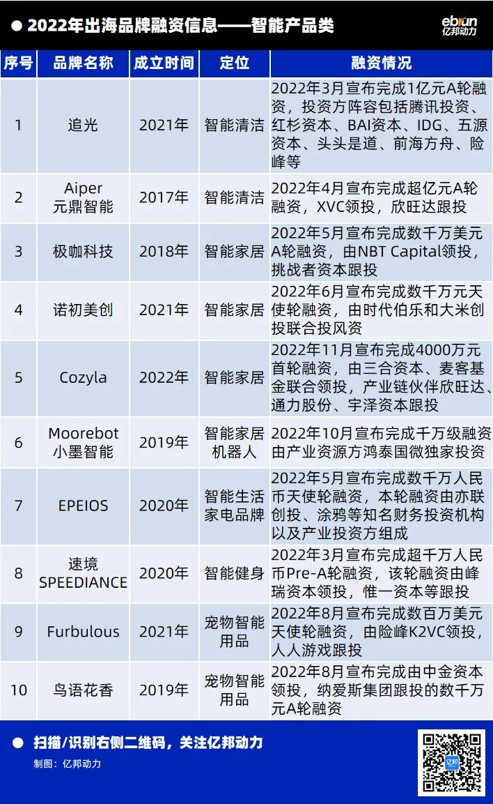 可以看到的是,2022年,在便攜式儲(chǔ)能、環(huán)保出行、智能家居、戶外裝備等新興品類,以及在個(gè)別在服裝、3C電子等傳統(tǒng)領(lǐng)域開(kāi)拓出新天地的出海品牌,更為資本所青睞。