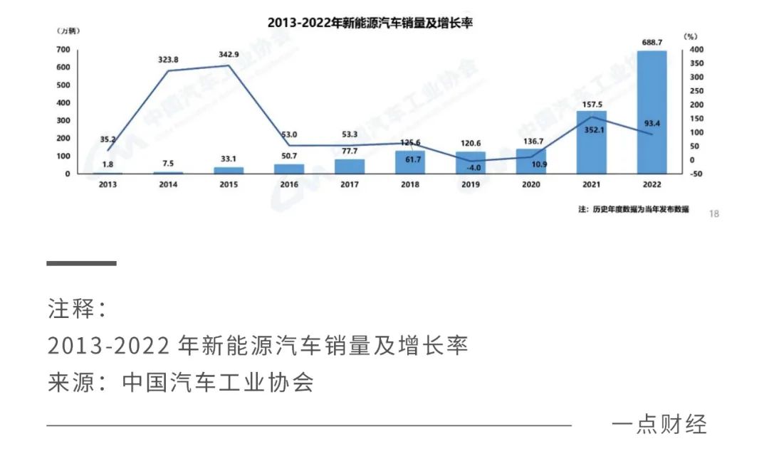 大街上來來往往的綠牌車,以及越來越無望的新能源車牌,見證著中國新能源汽車是真的熱起來了。來自中國汽車工業(yè)協(xié)會的數(shù)據(jù)顯示,2022年新能源汽車93.4%的增長率,是過去十年中的第四高,而第一二高的基數(shù)不到10萬輛。
