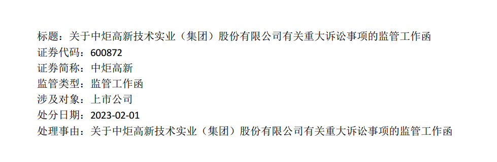 值得一提的是,中炬高新是上述公司中唯一涉及重大訴訟案的公司,其證券事務部相關人士表示,此次上交所下發(fā)的監(jiān)管工作函所涉及的事項為公司此前披露的與中山火炬工業(yè)聯(lián)合有限公司(下稱“工業(yè)聯(lián)合”)相關的案件事項,交易所要求公司進一步與其進行溝通。