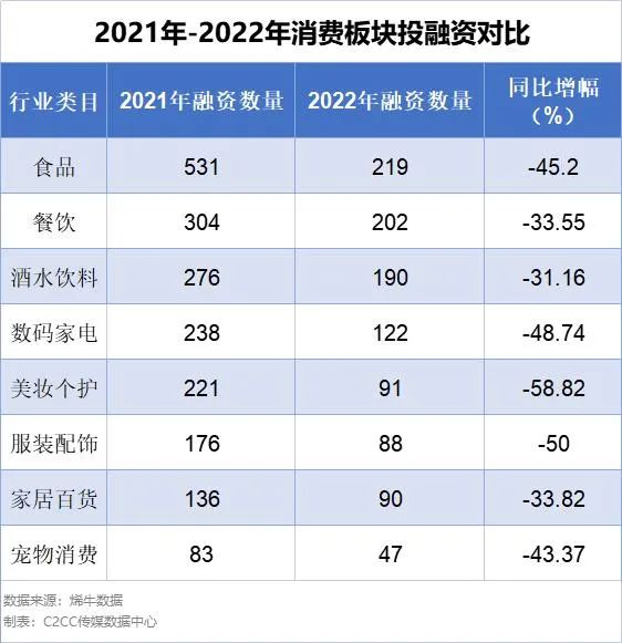 2022年,業(yè)內(nèi)出現(xiàn)頻率最高的關(guān)鍵詞當(dāng)屬“寒冬”,復(fù)雜多變國際形勢,加之疫情封控影響,中國創(chuàng)投出手更加謹(jǐn)慎,整個(gè)資本市場都處于低迷狀態(tài),美妝行業(yè)亦然。數(shù)據(jù)統(tǒng)計(jì)顯示,2021年國內(nèi)美妝行業(yè)共有221起投融資事件,2022年呈現(xiàn)斷崖式下跌,僅有91起,同比降低58.82%,是消費(fèi)板塊中降幅最大的類目。
