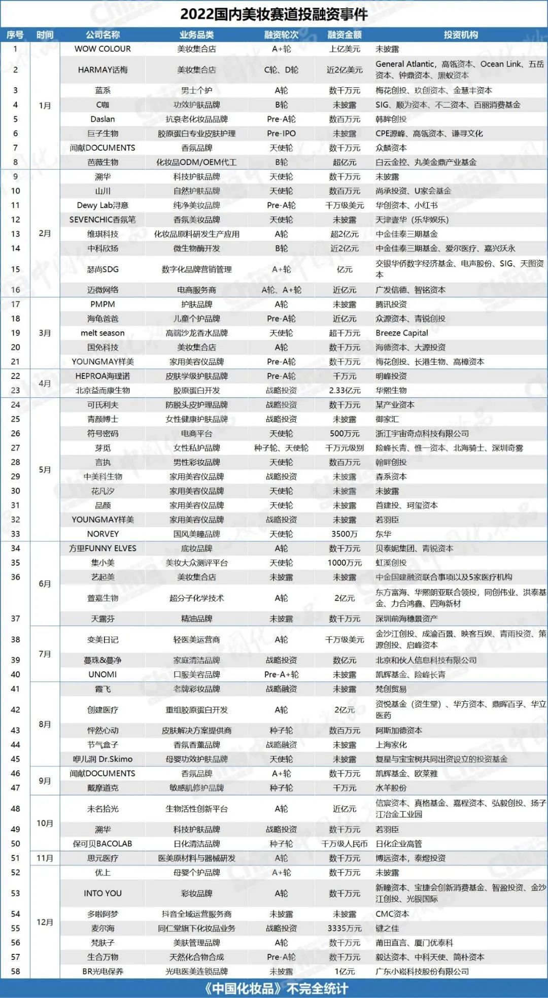 回顧2022,國際投融資市場持續(xù)火熱,國內(nèi)資本動(dòng)向稍顯低迷低迷,美妝投融資數(shù)量下滑,行業(yè)不得不“卷”,來爭取資本的青睞。為此,我們盤點(diǎn)了2022年部分投融資事件,幫助美業(yè)人士找到答案。