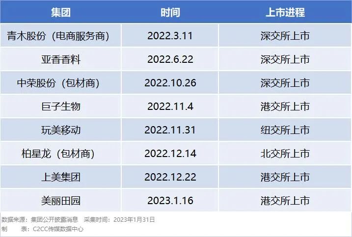 據(jù)不完全統(tǒng)計(jì),2022年通過上市進(jìn)一步擴(kuò)大融資的美妝相關(guān)企業(yè)共有7家,2023年1月,美麗田園也成功于港股上市。企業(yè)整個(gè)產(chǎn)業(yè)鏈也隨著上市逐步完善,從整個(gè)美妝行業(yè)來看,他們將會(huì)為市場帶來新的收入增長點(diǎn)。
