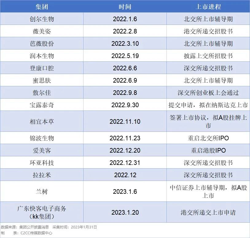此外,美妝代工廠芭薇股份進(jìn)入北交所上市輔導(dǎo)期,電商服務(wù)商拉拉米也在沖擊深交所IPO。