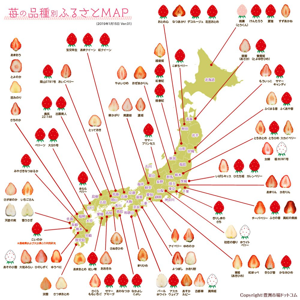 日本部分草莓品種產(chǎn)區(qū)地圖,圖片來源:豊洲市場ドットコム