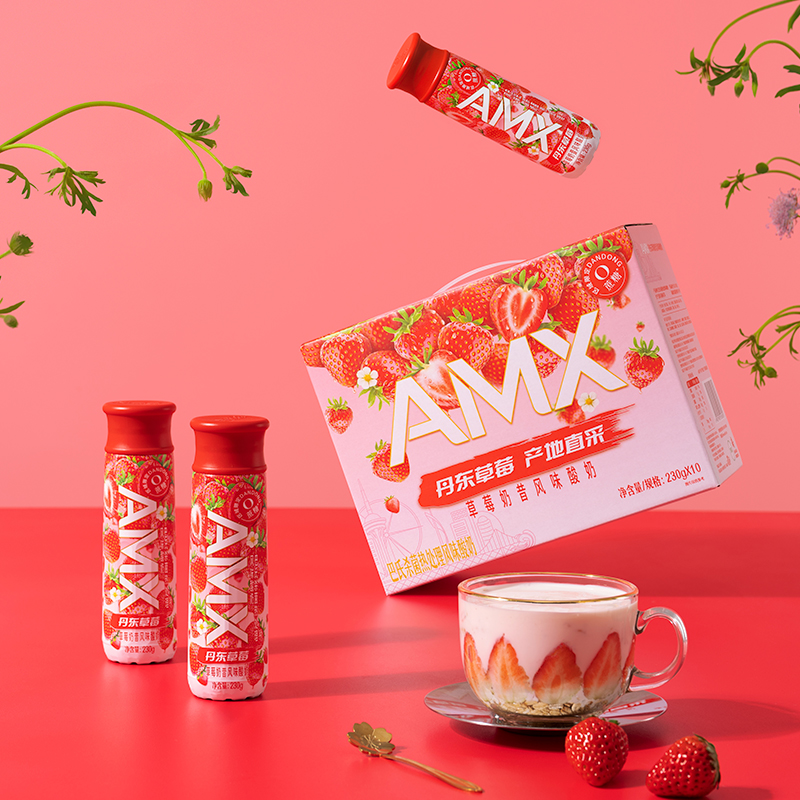 洞察到消費者對酸奶原料、口味等更細分、多元的需求,伊利安慕希挖掘中國優(yōu)質(zhì)地域食材,打造以“地域+水果”為產(chǎn)品特色的“地域限定”系列。于2022年推出了安慕希AMX丹東草莓酸奶。產(chǎn)品選用產(chǎn)地直采的成熟丹東草莓,果香濃郁果味清甜,經(jīng)12道工藝造就出優(yōu)質(zhì)的0蔗糖草莓果醬。安慕希反復(fù)嘗試酸奶與果醬的最佳配比,最終以10%的草莓果醬含量完美均衡了酸與甜,凸顯出水果的自然清甜,實力打破0蔗糖口味桎梏。