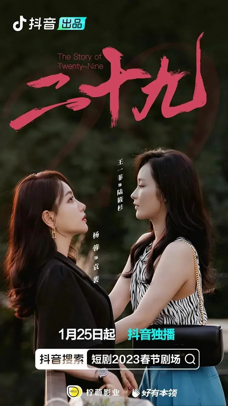 這其中,由抖音和檸萌影業(yè)聯(lián)合出品的雙女主都市情感短劇《二十九》,以當(dāng)前超過(guò)5億的播放量位居榜首,楊蓉等資深影視劇演員試水微短劇,在多個(gè)平臺(tái)獲得了不俗的口碑。