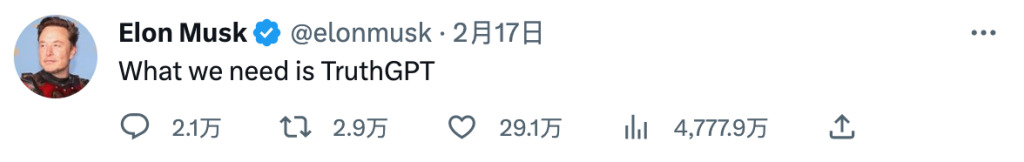 接著發(fā)文說:“我們需要的是TruthGPT”。