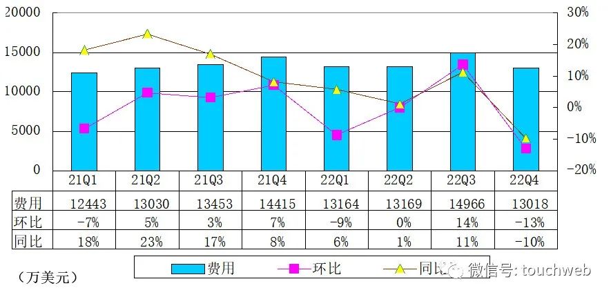 搜狐2022年第四季度費(fèi)用為1.3億美元,較2021年同期下降10%,較上季度下降13%。營(yíng)業(yè)費(fèi)用的下降主要是由于暢游在線游戲市場(chǎng)推廣費(fèi)的減少。