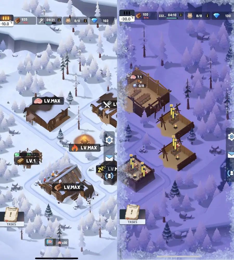 總結(jié)來看,《Frozen City》相比于《菲菲大冒險》,玩法更多樣化;相比于《輻射避難所》,時間機制更友好,弱化了強沉浸的機制。