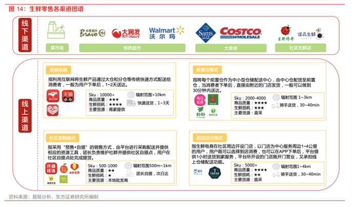 根據(jù)東方證券的解釋,所謂前置倉(cāng)模式,屬于即時(shí)配送模式中的一種,主要通過(guò)建立中心倉(cāng)和覆蓋用戶3km以內(nèi)的前置倉(cāng)網(wǎng)絡(luò),完成商品存儲(chǔ)、分揀和即時(shí)履約配送。
