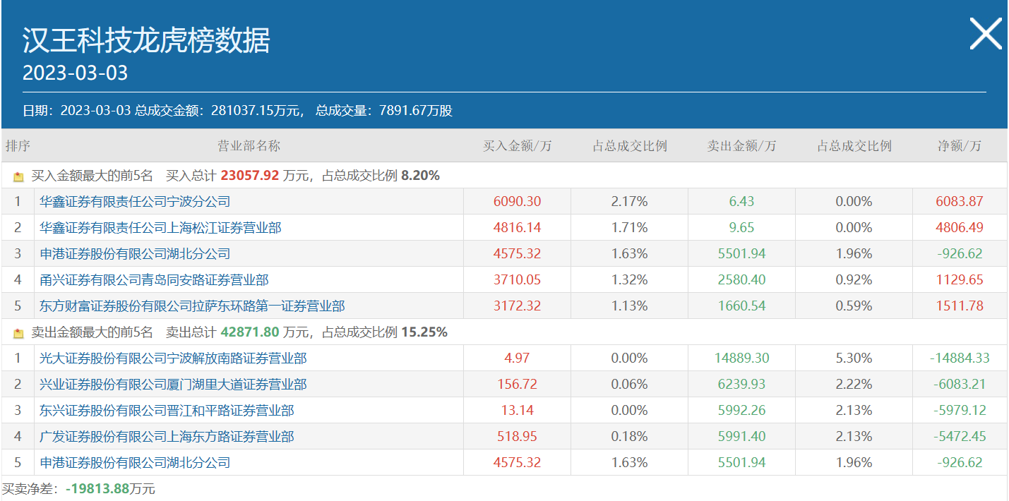 值得注意的是,2月28日至3月2日,漢王科技股價(jià)連續(xù)三個(gè)交易日收盤價(jià)格漲幅累計(jì)偏離達(dá)到20.53%,再次受到監(jiān)管層關(guān)注。