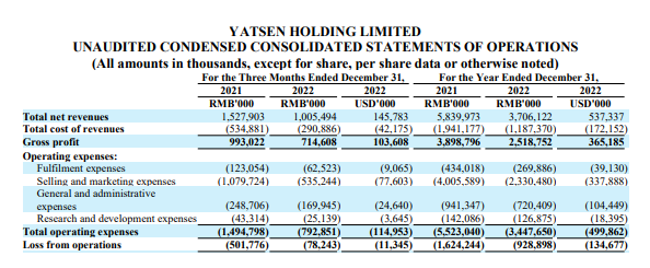 截圖自逸仙電商2022年財報