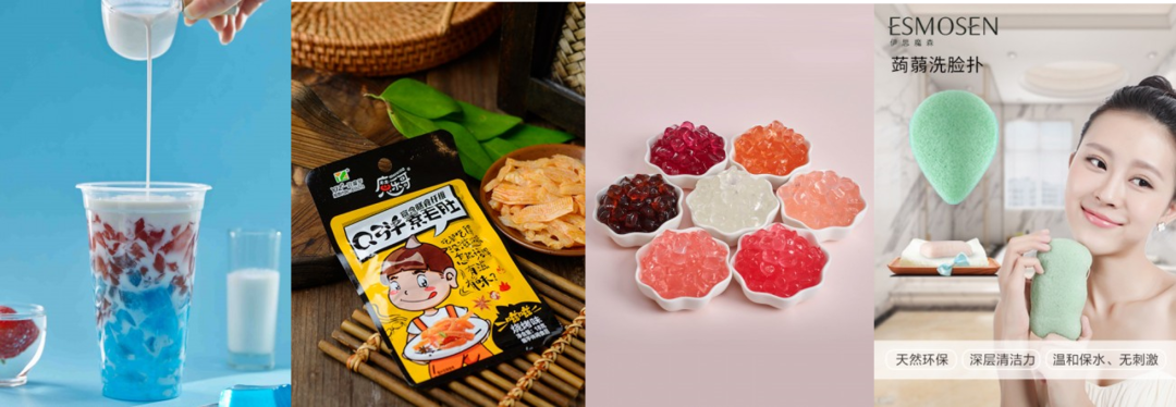 到目前為止,精加工的魔芋粉更多被應(yīng)用于食品領(lǐng)域,如魔芋爽、素毛肚、魔芋面等,當(dāng)然也在逐步從過(guò)去單純的食品原料領(lǐng)域拓展到美妝用品、醫(yī)療保健、工業(yè)制造領(lǐng)域。