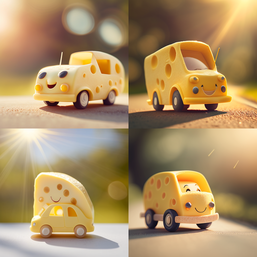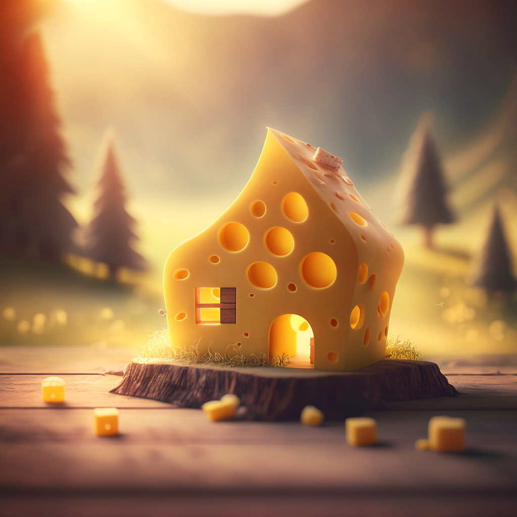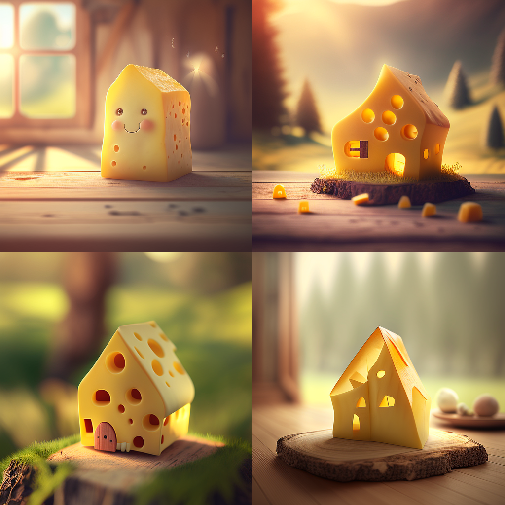 這一次帶給我們最大驚喜的是奶酪,并不需要十分復雜的關(guān)鍵詞,僅僅是限定形狀與風格,再設(shè)定合適的光影,Midjourney對于奶酪的設(shè)計便大大超出了我們的預期。