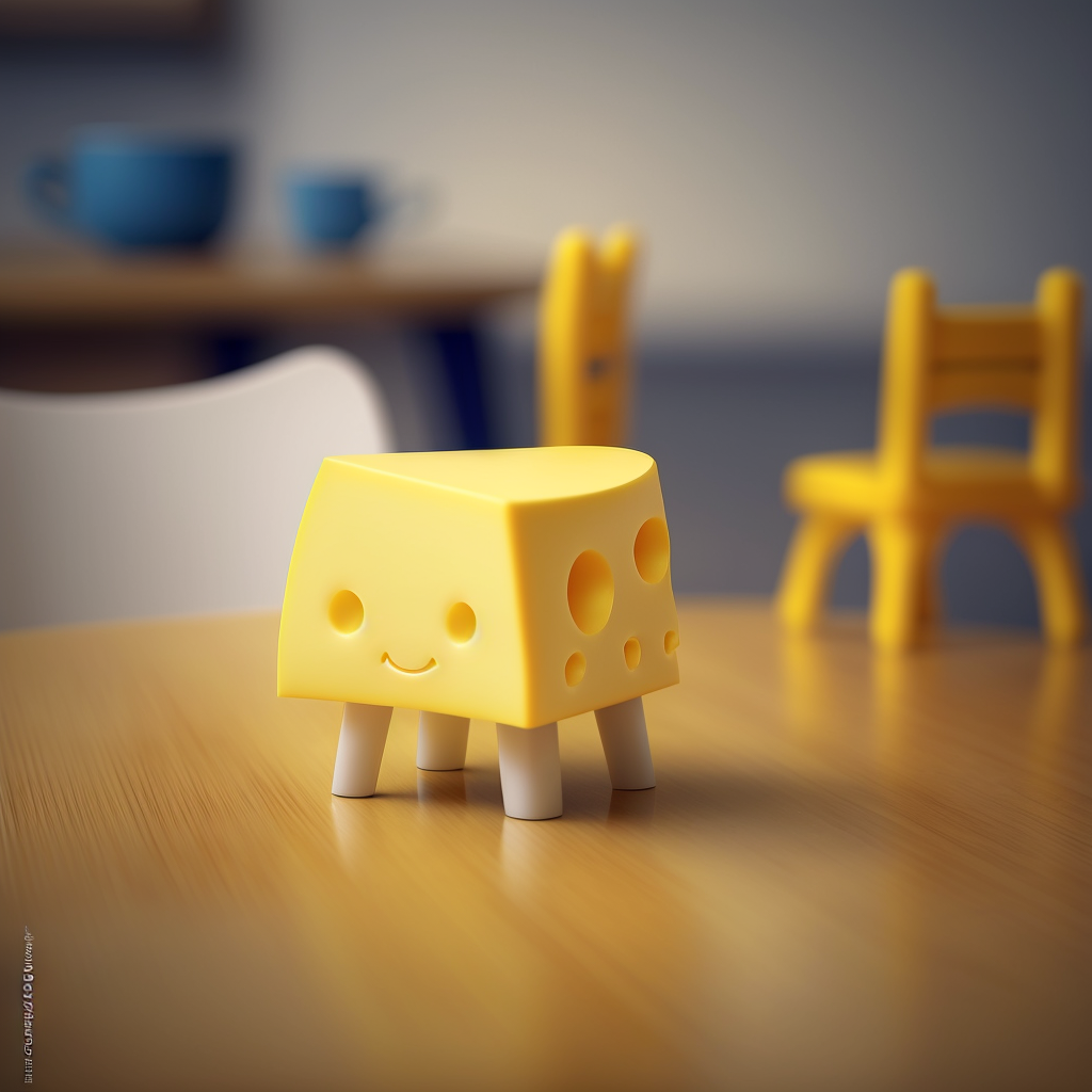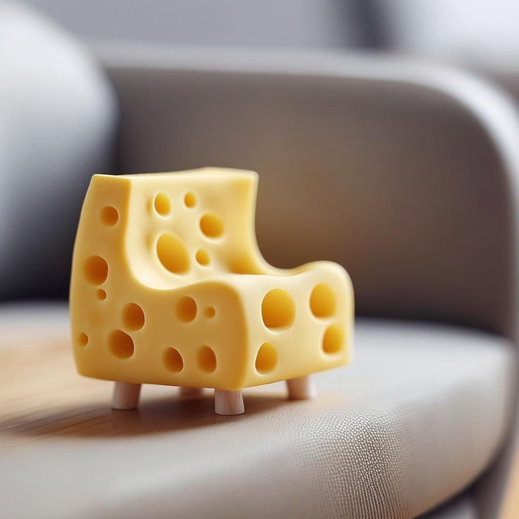 有了房子之后,我們將“家具”與奶酪結(jié)合,Midjourney延續(xù)前面的風格,繼續(xù)生成了一系列可愛又可口的“家具”。