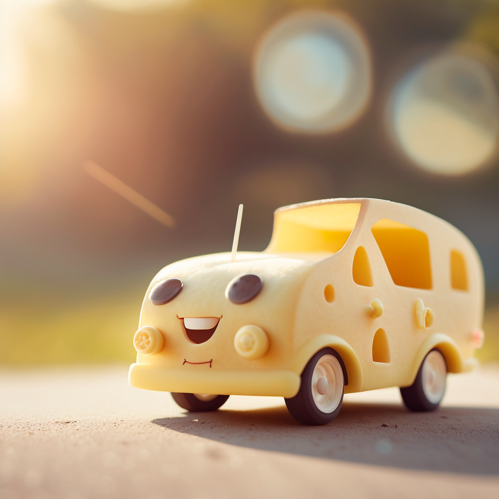 有了可愛的房子、可愛的家具,那當然也要有可愛的汽車。奶酪好不好吃不知道,但是酷愛汽車的寶寶們看到了,肯定會瘋狂,家長們還是把圖片藏好吧。