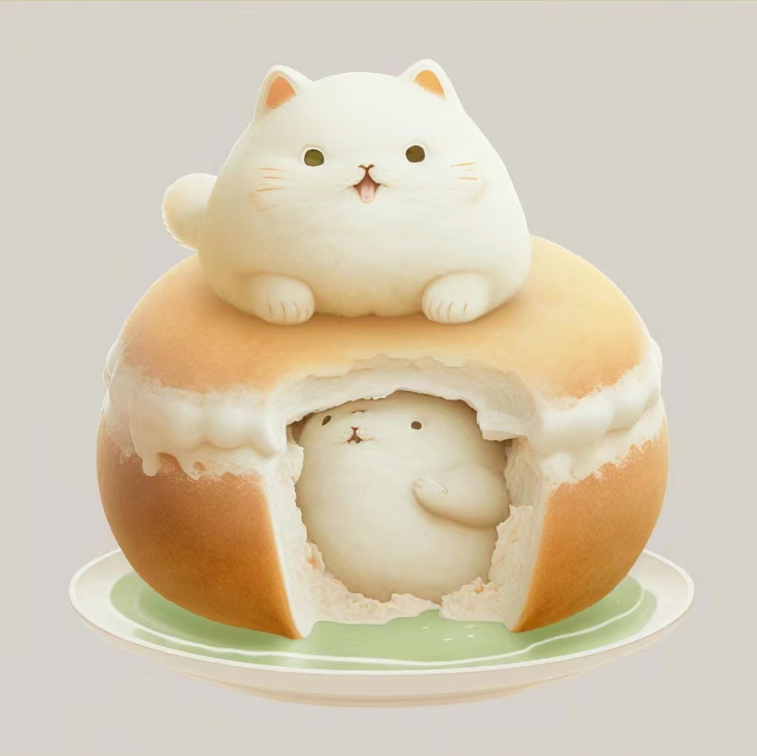 說到甜點,怎么能少了日式的呢?Midjourney巧妙地把萌寵、雞蛋燒和銅鑼燒結(jié)合起來,讓這個甜品不僅能俘獲我們的胃,還能俘獲我們的心呀!