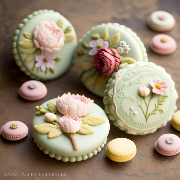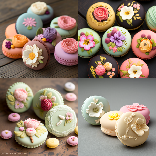 現(xiàn)在市面上見到的馬卡龍大多造型較為簡約。為了設(shè)計出不一樣的馬卡龍,我們將“春天”作為關(guān)鍵詞輸入。將各種花“放置”在馬卡龍上,并且大多使用柔和的配色,帶來視覺盛宴的同時也讓我們感受到了春夏特有的生命力。